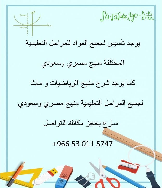 يوجد تأسيس بجميع المواد بجميع المراحل منهج مصري وسعودي كما يوجد تدريس الرياضيات وأيضا الخاص لجميع المراحل منهج مصري وسعودي
