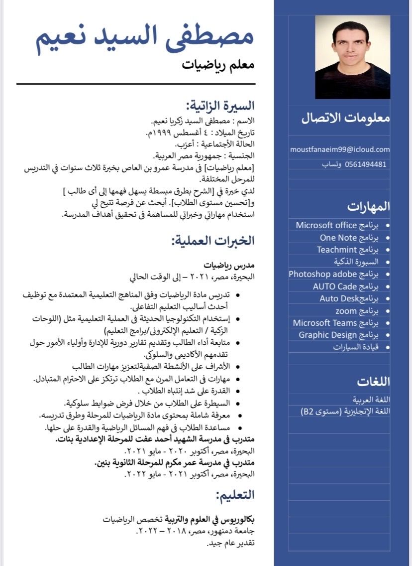 معلم رياضيات خبرة ثلاث سنوات مقيم في مكة ابحث عن عمل بمدرسة التواصل