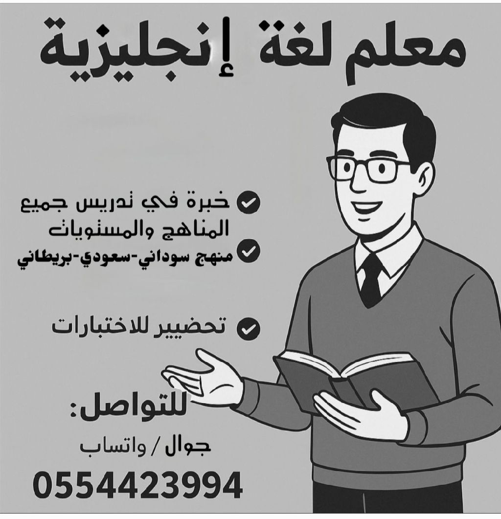 معلم لغة انجليزية سوداني مقيم. تدريس كافة المراحل التعليمية. تأسيس وقدرات وغيرها. خبرة أكثر من 15 سنة
