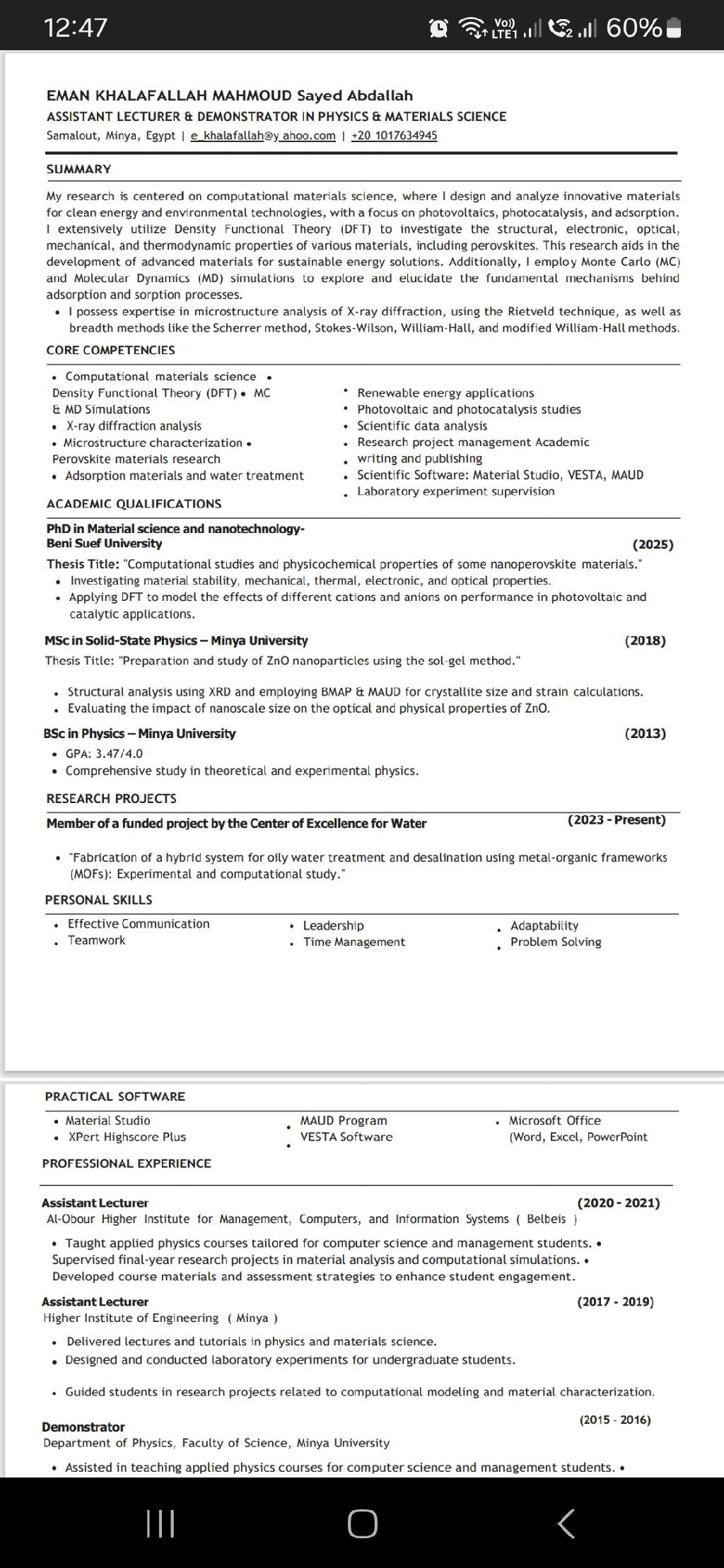ابحث عن وظيفة معلمة (علوم - رياضيات - الفيزياء - الأحياء) بالمدارس الانترناشونال والمدارس الأهلية حاصلة على الدكتوراه في الفيزياء