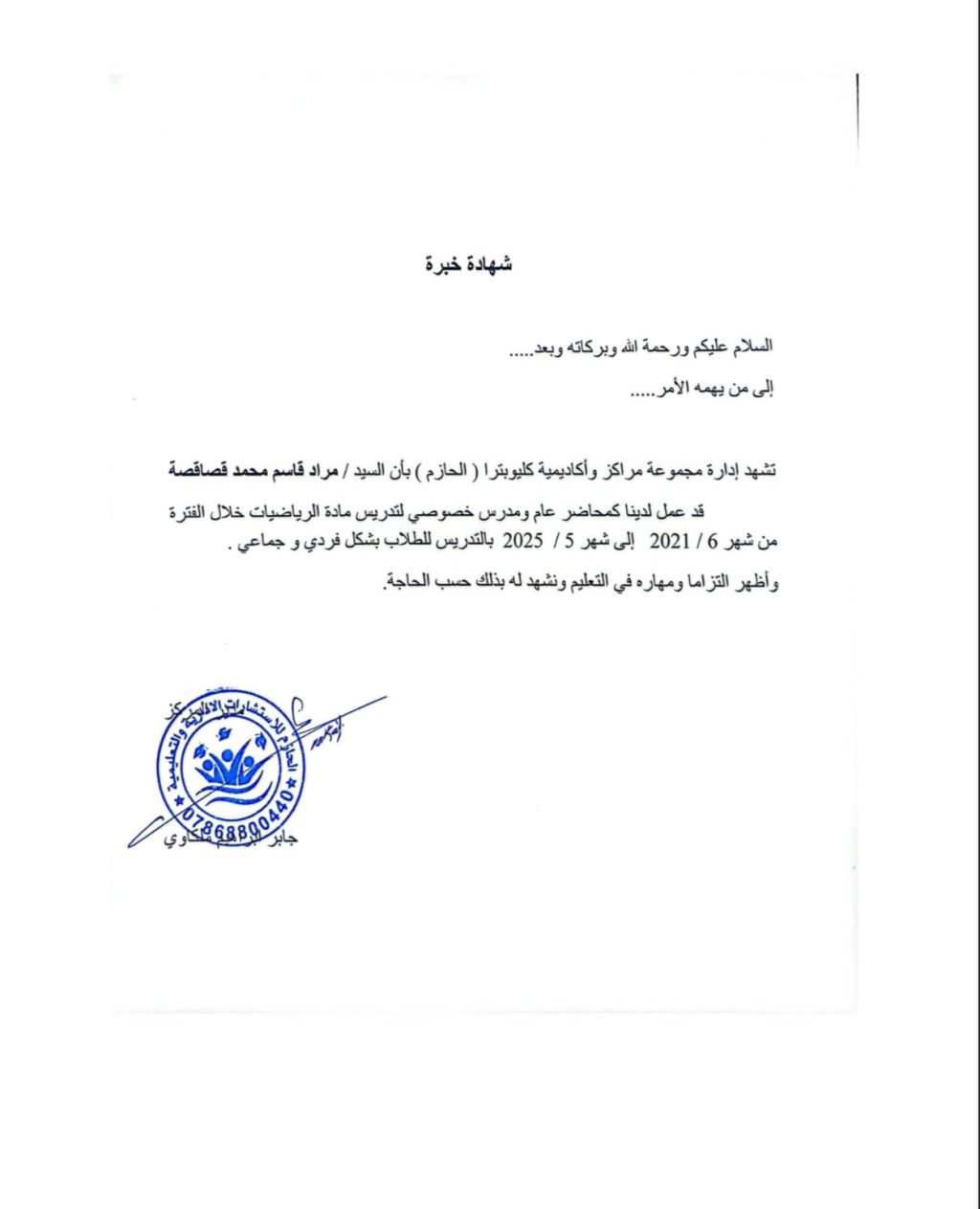 معلم الرياضيات، لدي خبرة جيده في مجال التدريس. مقيم في السعودية، على استعداد نقل الكفالة
