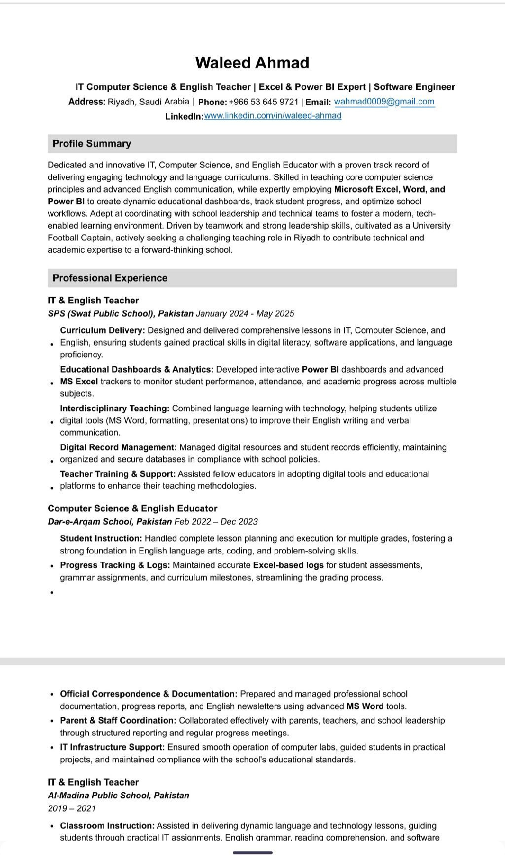 I hold a bachelor's degree in software engineering. I have developed solid lesson planning and instructional skills, enabling me to deliver engaging and high - quality education tailored to diverse learning needs. My experience includes providing training and support to enhance student learning and development in educational settings