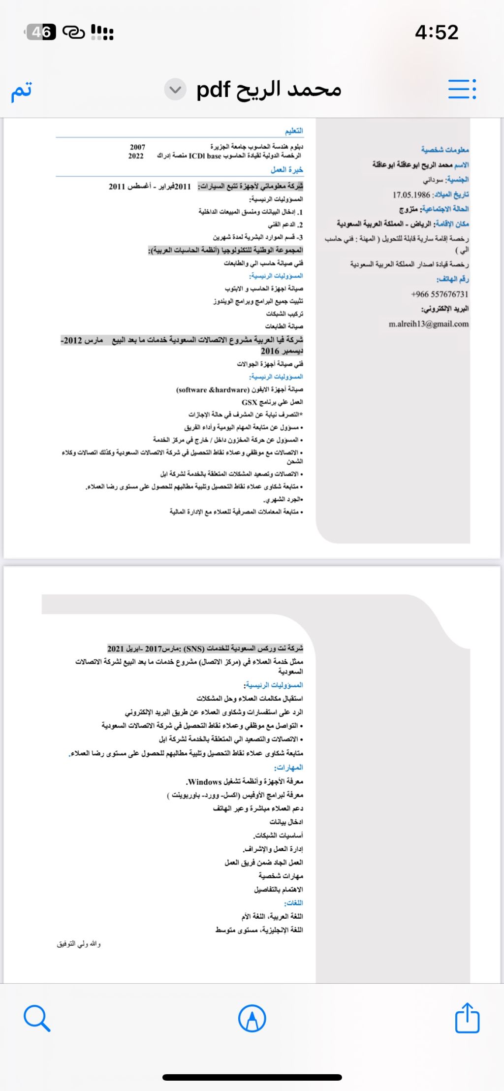 سوداني مقيم في الرياض، دبلوم هندسة حاسب الآلي، لدي خبرة في خدمات ما بعد البيع للاجهزة الذكية والصيانة، خدمات العملاء والدعم الفني، ادخال البيانات، الأعمال الادارية