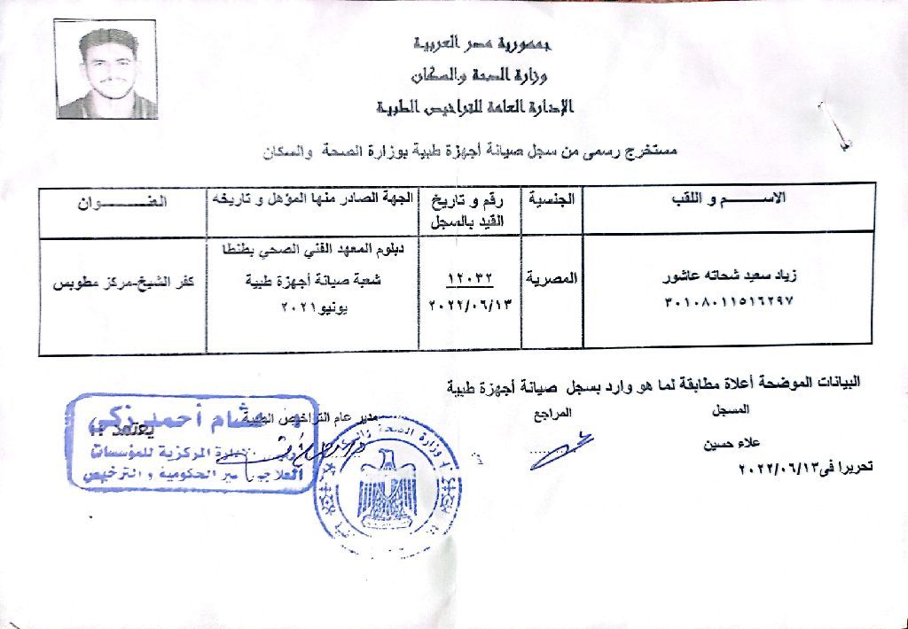 فني اجهزة طبية خبرة 5 سنوات مصري الجنسية وسبق لي العمل في دار الطب التخصصي وفي شركة الوسام للأسنان ومندوب في شركة المصريه ميديكال وشركة هاي تيك وشركة الجام برو 96 و98 وفي جهاز التنفس الصناعي وفي اجهزة العناية المركزه متواجد في الرياض ومتاح للعمل داخل أي مكان في المملكة ومتاح نقل كفالة