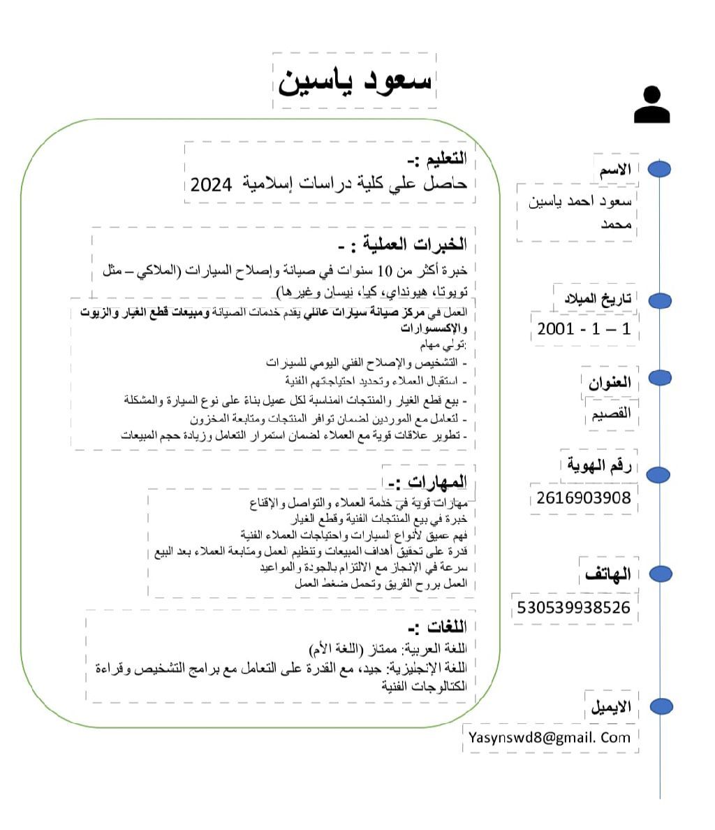 فني صيانة سيارة خبرة أكثر من 10 سنوات في صيانة واصلاح السيارات (الملاكي - مثل تويوتا، هيونداي. كيا، نيسان وغيرها) العمل في مركز صيانة سيارات عائلي يقدم خدمات الصيانة ومبيعات قطع الغيار والزيوت والأكسسوارات