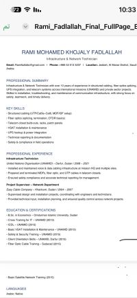 With over 13 years of working for an organisationUNAMID and UNAMIS as infrastructure technician and having good and different type of training I am looking for job in KSA