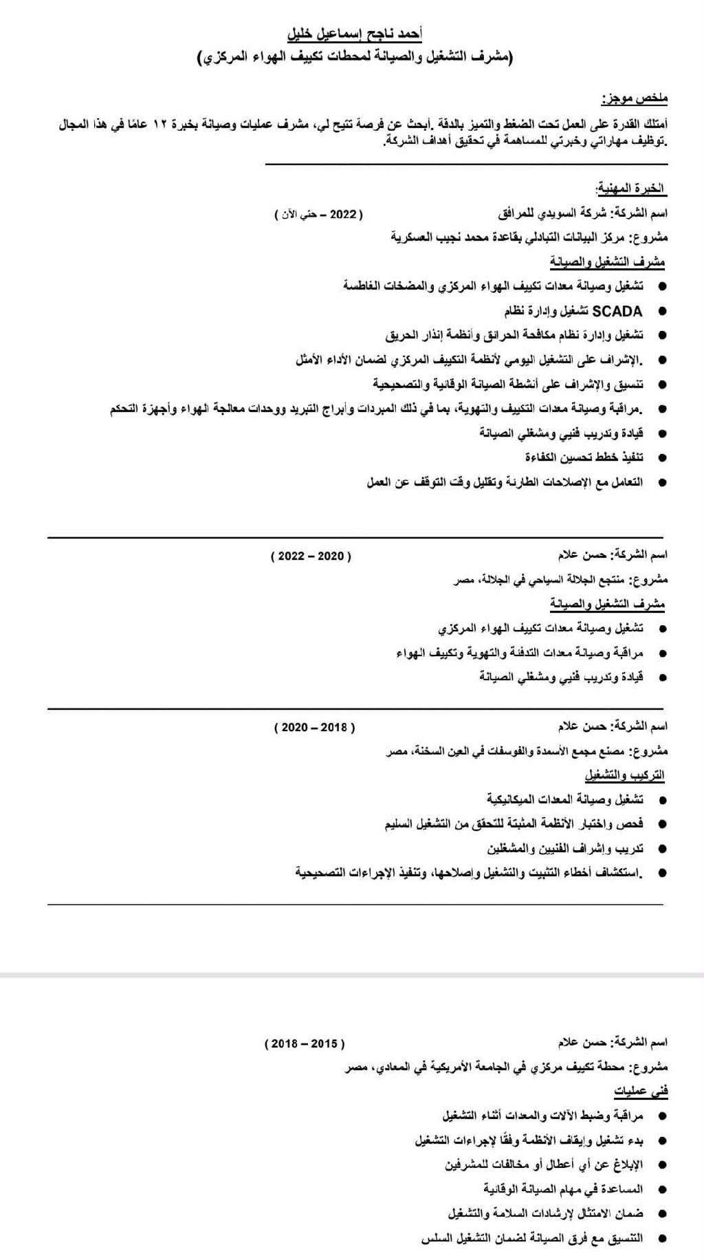 فني تشغيل وصيانة تكييف مركزي (HVAC) خبرة 8 سنوات إقامة سارية مؤسسة ابحث عن عمل في مجال التكييف المركزي