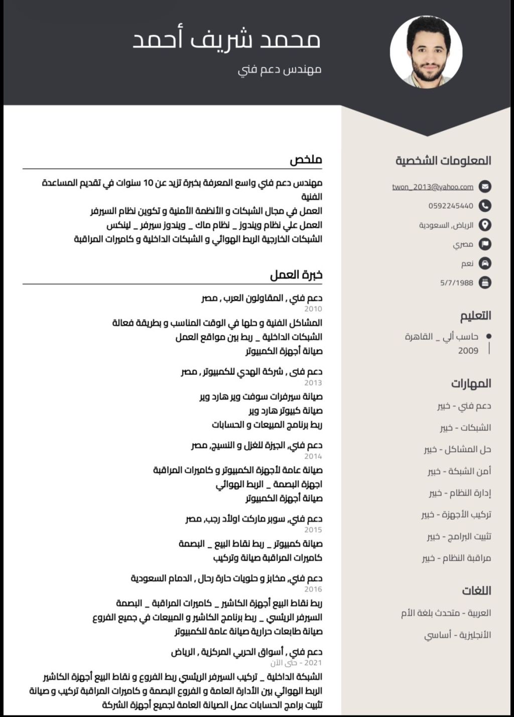 باحث عن عمل شبكات وكاميرات مراقبة تمديد وتركيب تكوين سيرفرات