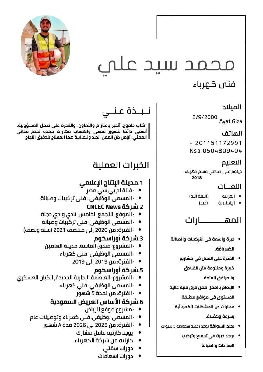كهربائي تركيبات وصيانة دبلوم صناعة قسم كهرباء معي رخصة سعوديه أقامه سارية وأقدر أنقل كفالة فوري