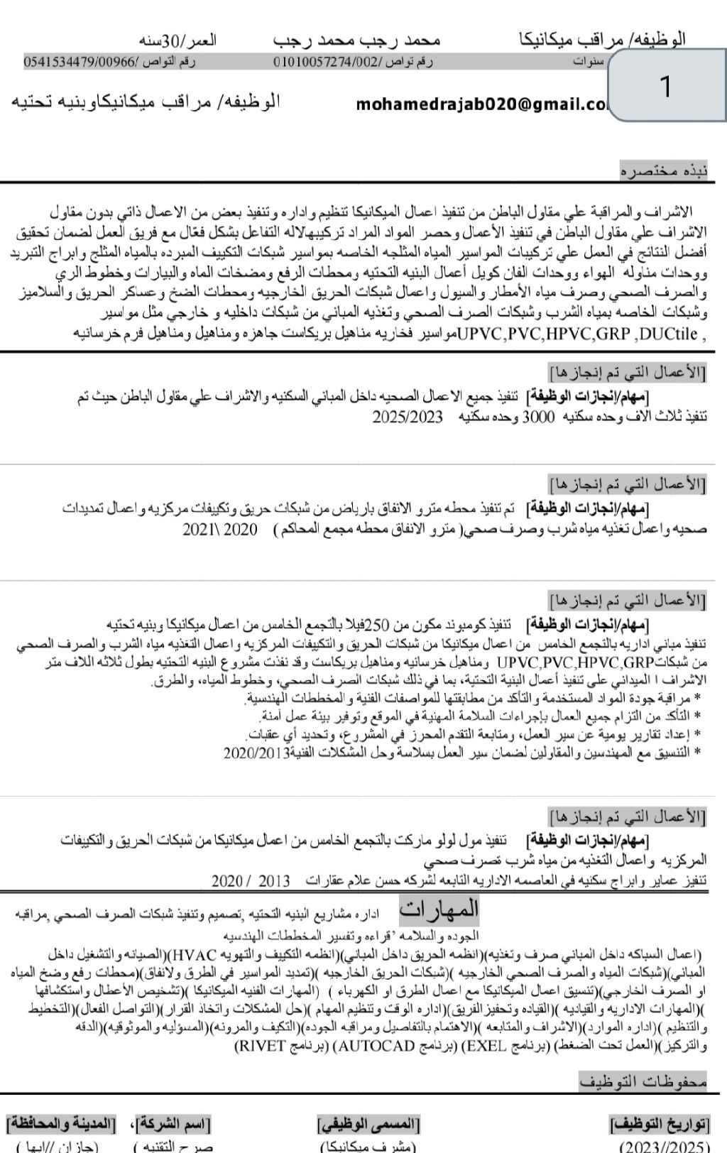 Mechanical supervisor seeking employment. Addressing contractors, real estate developers, and consulting firms. Experienced in major national projects such as the Riyadh Metro Station, the Courts Complex, and Ministry of Housing projects