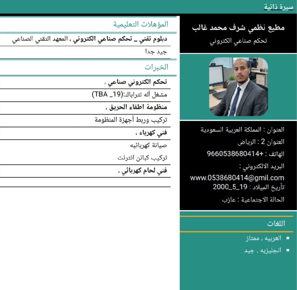 أنا شاب أبلغ من العمر 25 عام. ابحث عن عمل لدي دبلوم تحكم صناعي الكتروني. ولدي خبرة في مجال الكهرباء. وأنظمة الانذار