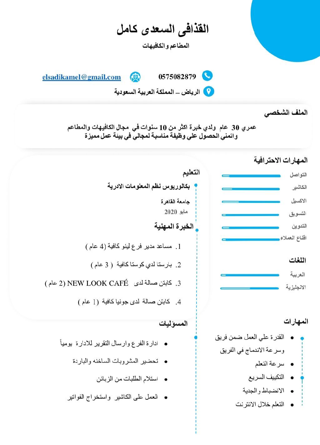 طلب ايجاد عمل بدوام كامل في مجال الكافيهات