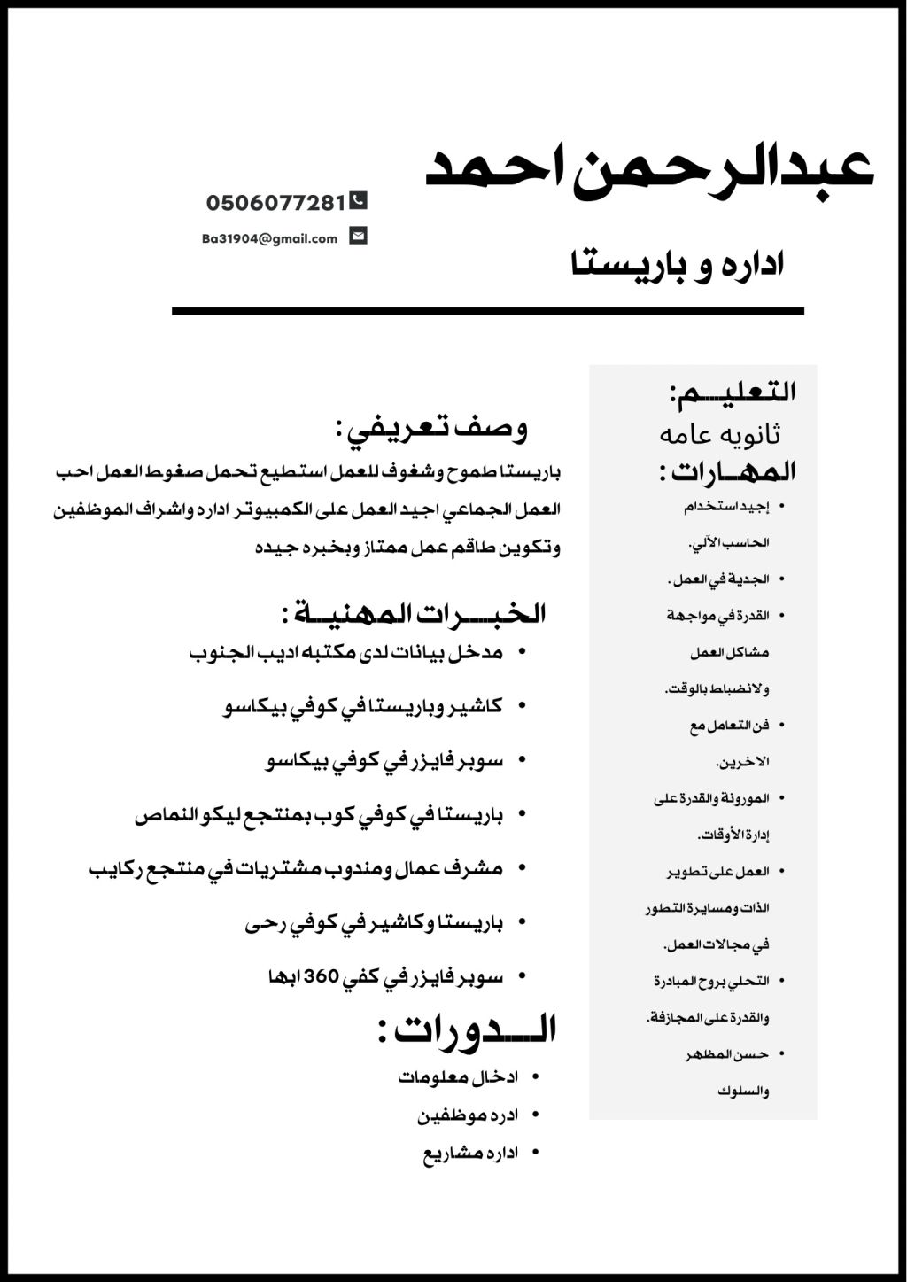 شاب يمني ابحث عن وظيفة ادارة اشراف باريستا أي وظيفة