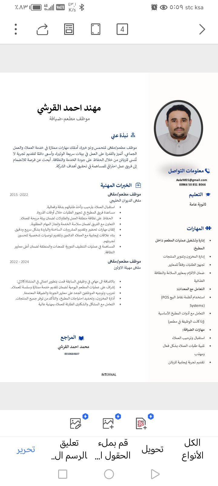 أنا قهوجي ولديه خبرة في شغل الديوانيات والكافيهات وايجاد العمل في القهوة في الاستراحات والمعارض والشركات