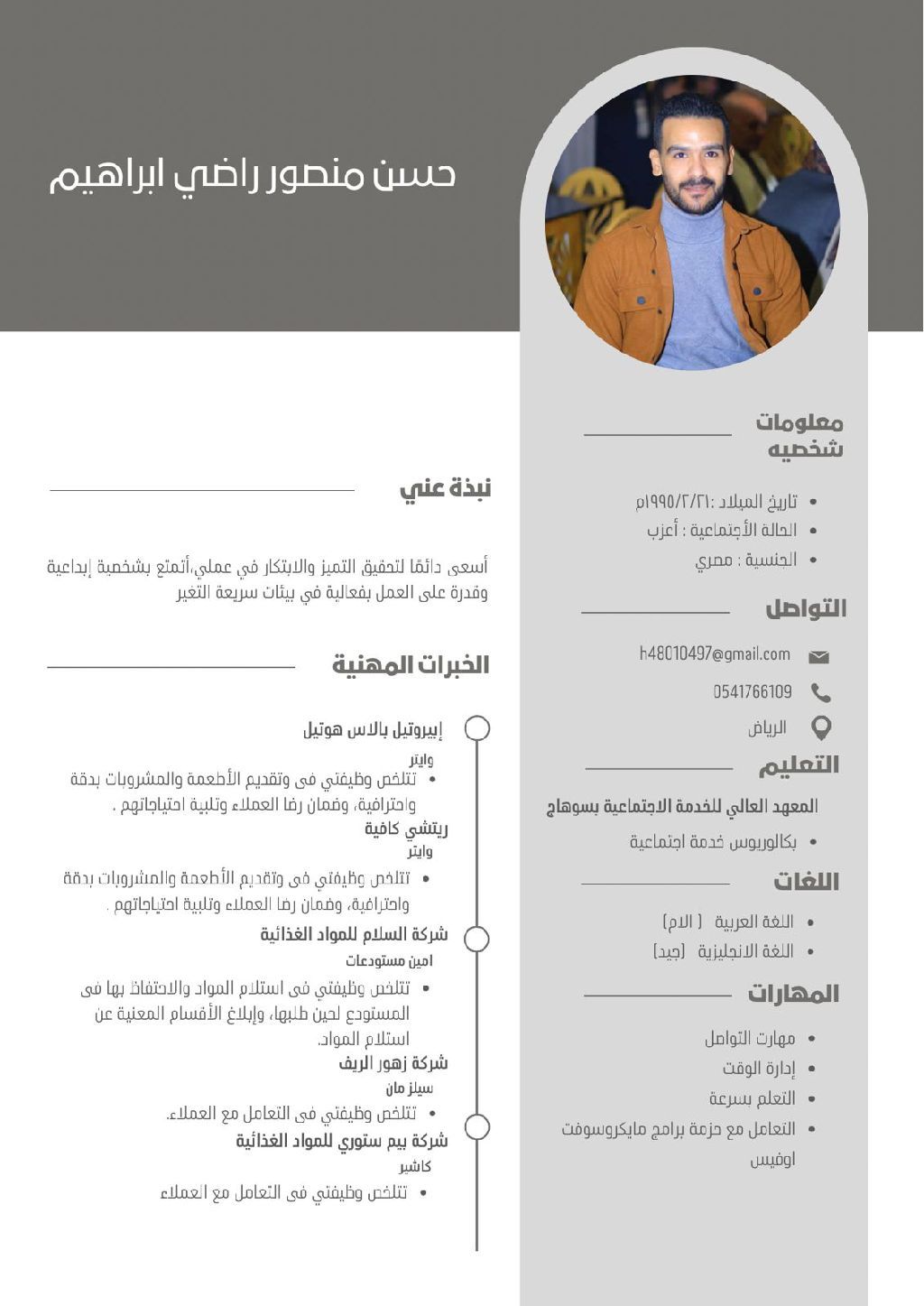 خبرة في مجال المطاعم والفندقة، سبق لي العمل في إبيروتيل بالاس هوتيل شرم الشيخ، ريتشي كافية طلعت حرب، ايجيبت بيكاري ستورز، ريكسوس هوتيل
