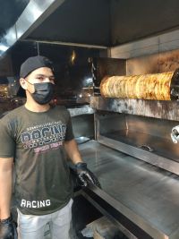 معلم شاورما غاز وفحم تتبيل شك قص إقامة سارية الجنسية مصري
