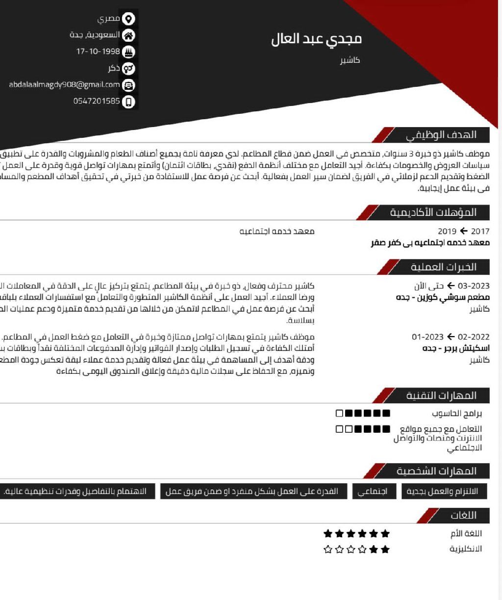 ابحث عن عمل في مجال المطاعم السن 27 سنة مصري الجنسية خبرة فوق 3 سنين في السعودية موجود كرت صحي وإقامة
