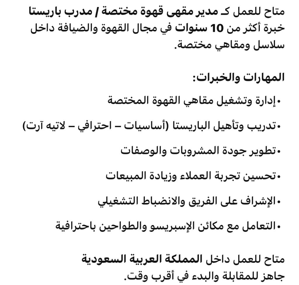 جاهز للعمل فورا في حال القبول متوفر سيارة للتنقل وجاهز لنقل الكفالة