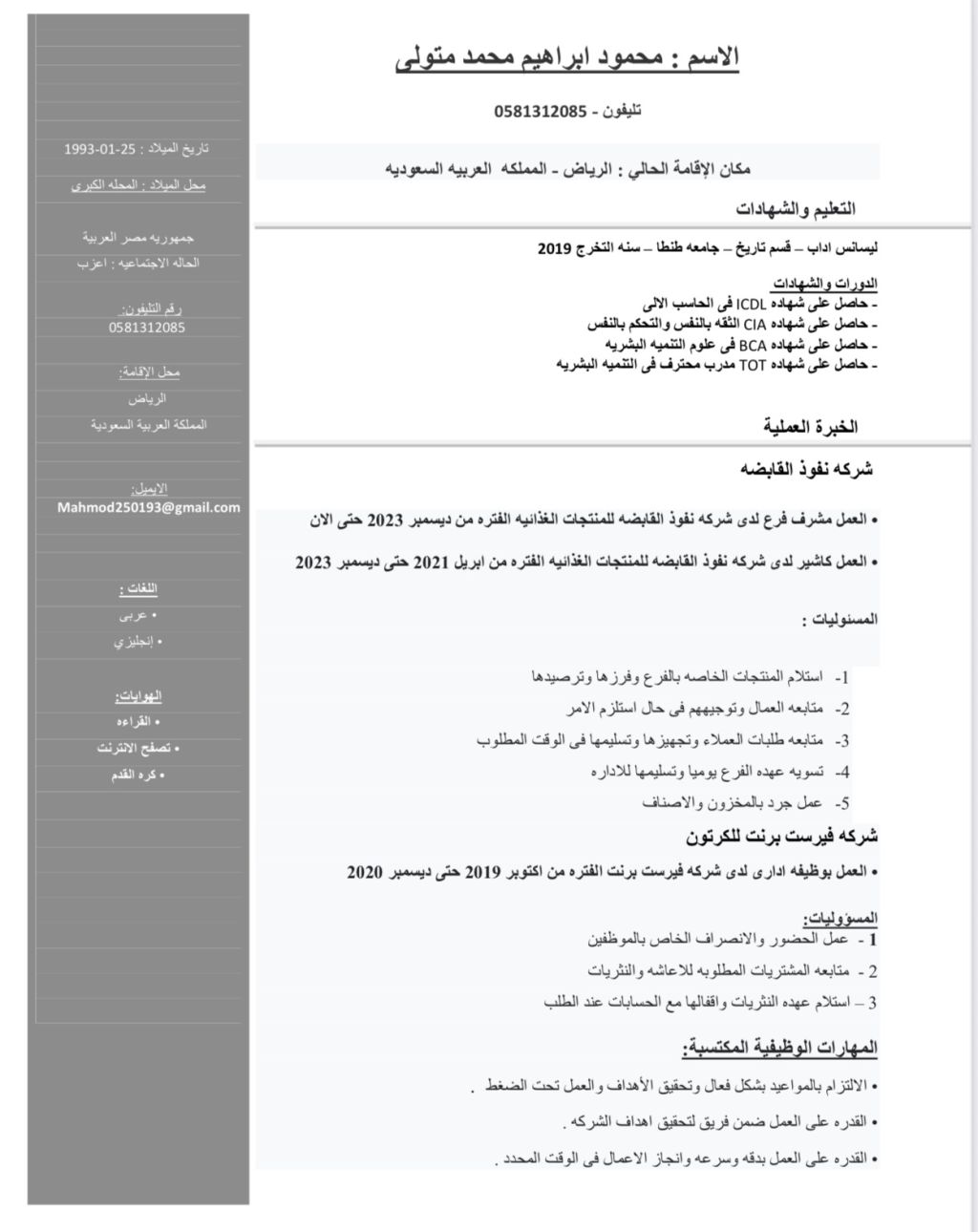 ابحث عن عمل كاشير مشرف فرع مطاعم كابتن صالة خبرة خمس سنوات بشركة نفوذ القابضة في الرياض المؤهل جامعي ليسانس أداب 2019 مصري الجنسية محل الإقامة الرياض إقامة سارية كارت صحي ساري
