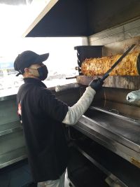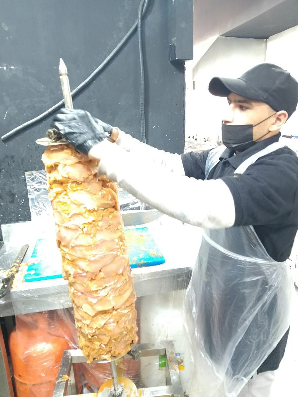 معلم شاورما دجاج فحم تتبيل شك قص وصوصات إقامة سارية جاهز للعمل
