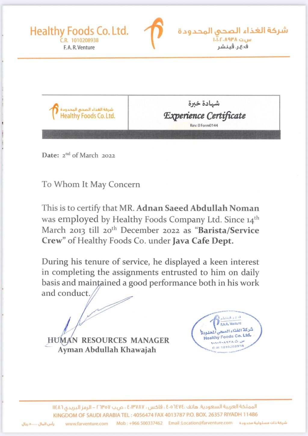 ابحث عن عمل في مجال الكافيهات خبرة 12 سنة باريستا كاشير مشرف