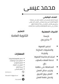 باريستا باحث عن عمل سبق لي العمل في كوفي وأجيد اعداد كافة المشروبات الباردة والحارة