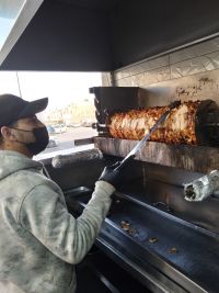 معلم شاورما فحم وغاز تتبيل شك قص إقامة سارية جاهز للعمل