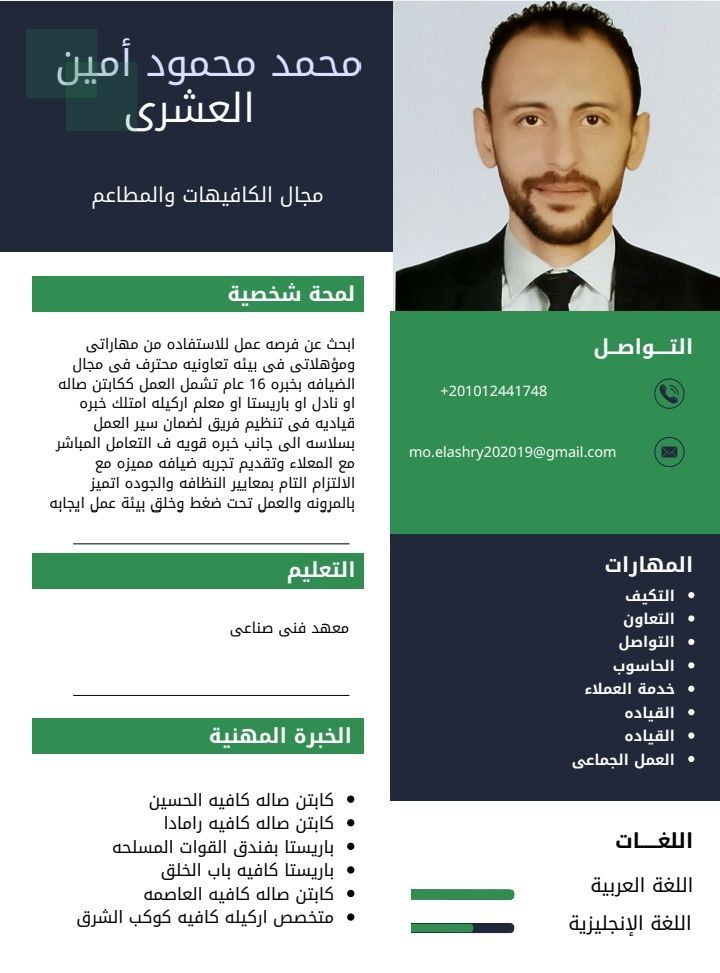مصري الجنسية، ابحث عن فرصة عمل في مجال الكافيهات خبرة 17 سنة وسبق لي العمل داخل المملكة باريستا وكابتن صالة مقيم في جدة إقامة سارية وكارت صحي ساري