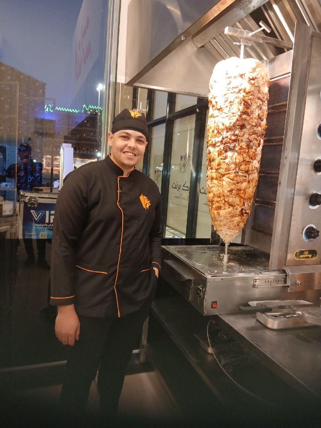 مساعد معلم شاورما يجيد القص وعندي خبرة في شك الأسياخ