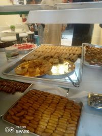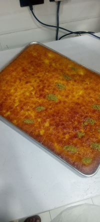أنا معلم جميع الكنافة والخليه والقيمات وبلاح الشام والبسبوسة والبان كيك خبرة سنتين