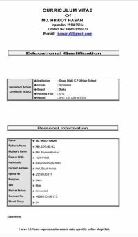 I am MD Hridoy Hasan. I am a beresta. I have 3 years experience barista and cassiar in KSA. I need a job. please connect with me