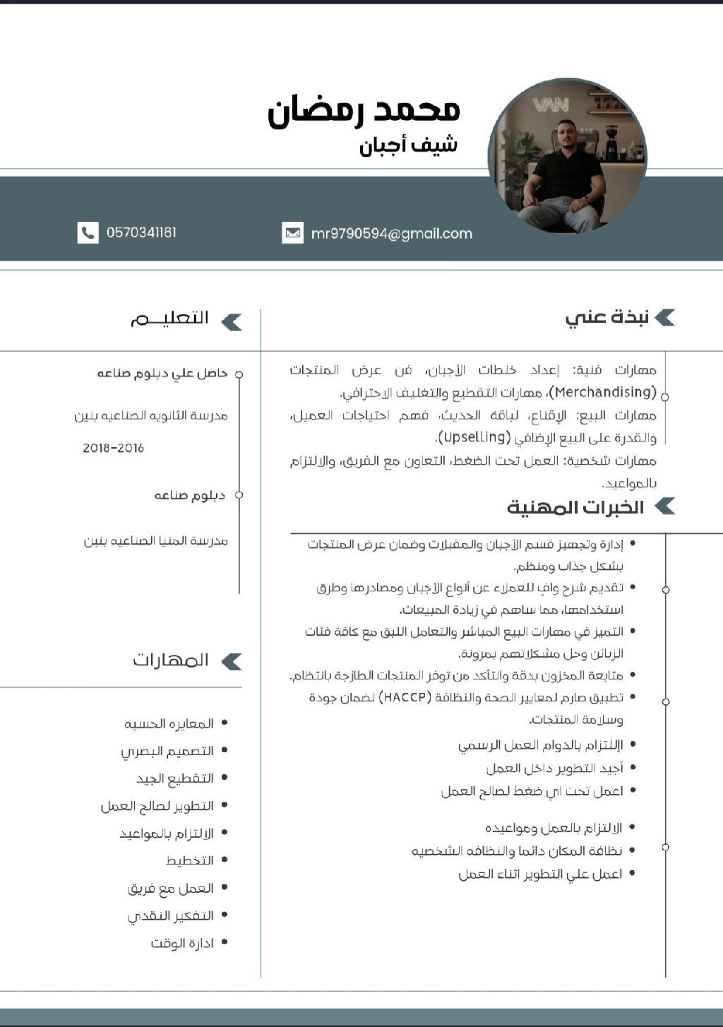 الاسم محمد رمضان لدي اقامة سارية ابحث عن عمل شيف أجبان خبرة عامين في السعودية و5 أعوام في مصر