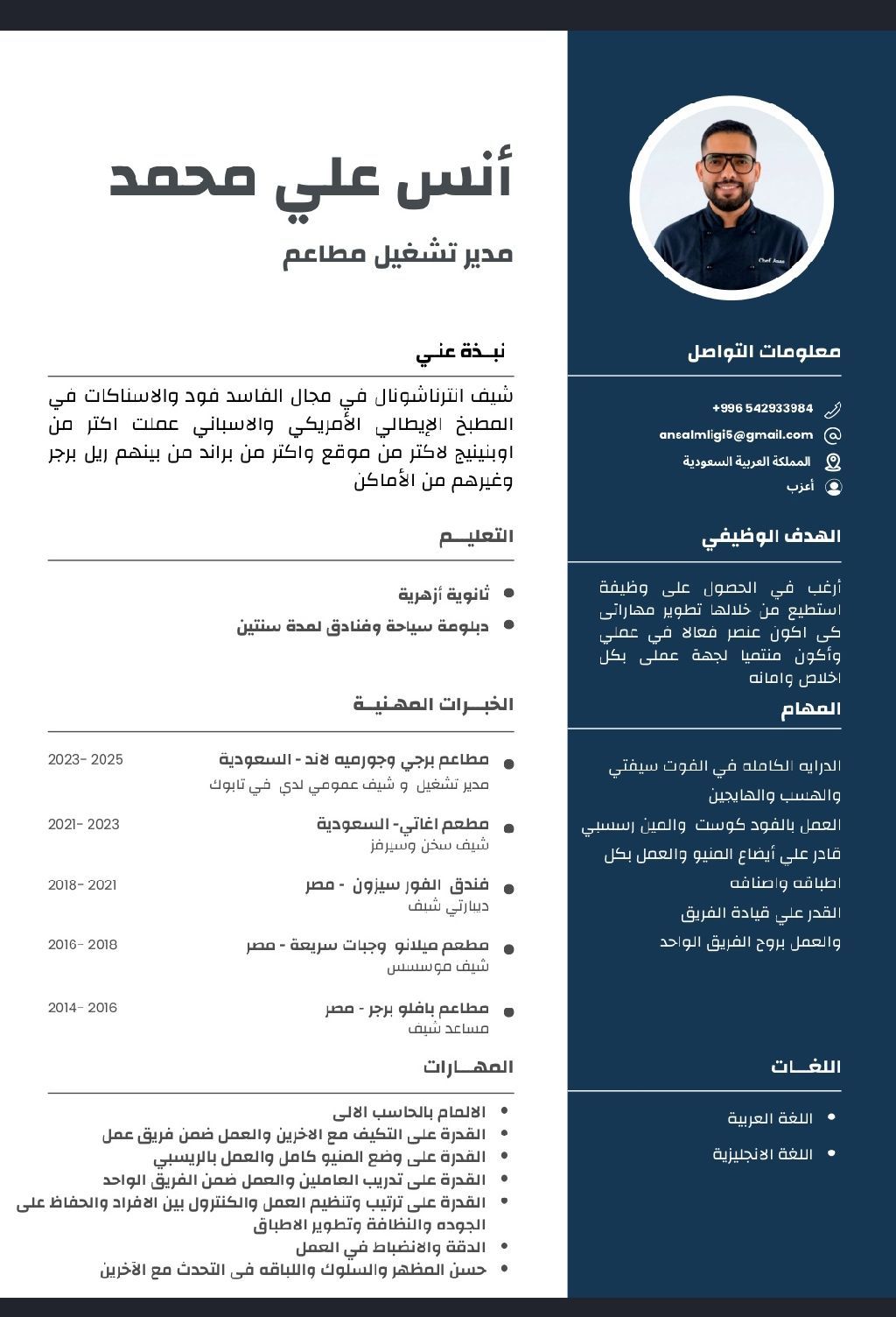 اخواني أنا شيف انترناشونال واداري تشغيل ميداني خبرة 6 سنوات داخل المملكة و5 سنوات في مصر في مجال الا سناكات والفاست فود المطبخ الإيطالي الأمريكي الإسباني عملت علي تأسيس أكثر من براند ورفع قدرات أكثر من مطعم ابحث عن فرصة عمل في مطاعم كافيهات فنادق داريه كاملة Operation Hygiene اعمل علي أع المنيو وحساب الكوست وتقليل الهدر والعمل علي الرسبي لضبط الجودة والكوالتي أقامه سارية رخصة قيادة نقل كفالة