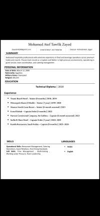 كابتن اوردر فنادق خبرة 8 سنين في الفنادق والمطاعم ورقم الفون موجود في مكة