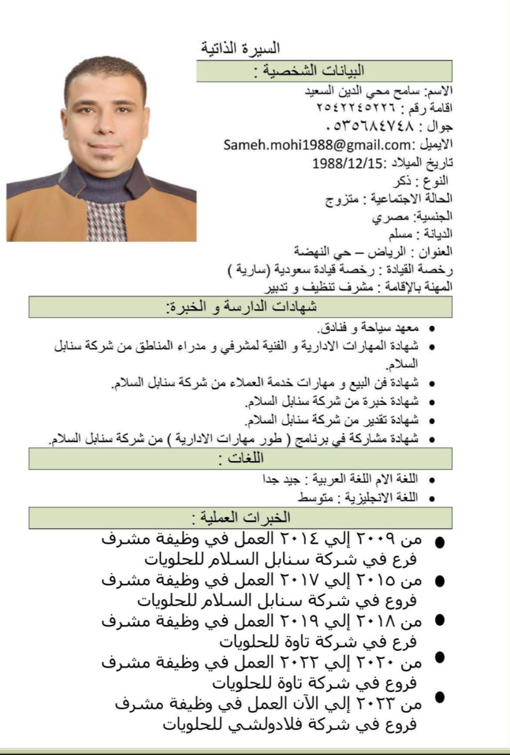 مشرف فروع في مجال الحلويات خبرة أكثر من 15 عام. عملت تسلسل اداري عملي وتشغيلي بالشركات وشاركت في افتتاح فروع ومناطق خارجيه وتطوير المنتجات وكل ما هو جديد في مجال الحلويات. وكذلك تريب الموظفين علي عملية البيع والتعبئة والمتابعة مع مشرفي الفروع الجرد والمخزون حسب نظام الشركة. الإقامة سارية وقابلة للنقل. ويوجد رخصة قيادة سارية. متواجد في الرياض