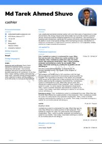 I am a Bangladeshi, my name is Tarek Ahmed Shuvo. I am in Saudi Arabia for two years. I have been working in a restaurant. My work experience is one year as a waiter and one year as a cashier. I know Arabic, Hindi, and English