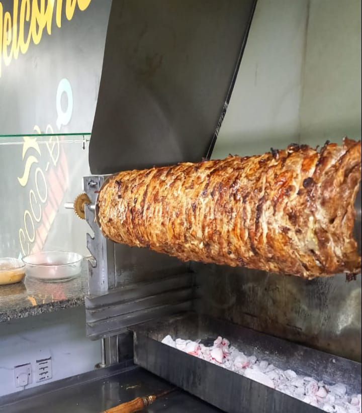 معلم شاورما علي الفحم والغاز مع. التبيله والصوصات. مصري