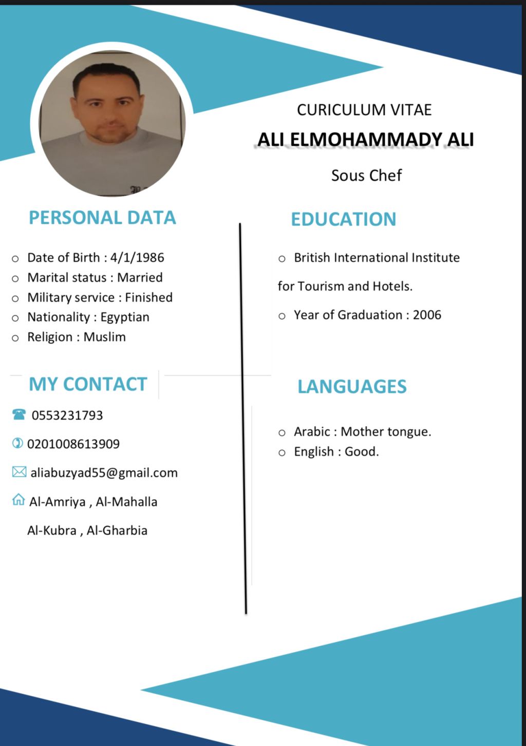 شيف سخن انترناشونال شرقي غربي إيطالي خبرة 17 سنة موجود بالمملكة خبرة بالمملكة 6 سنين