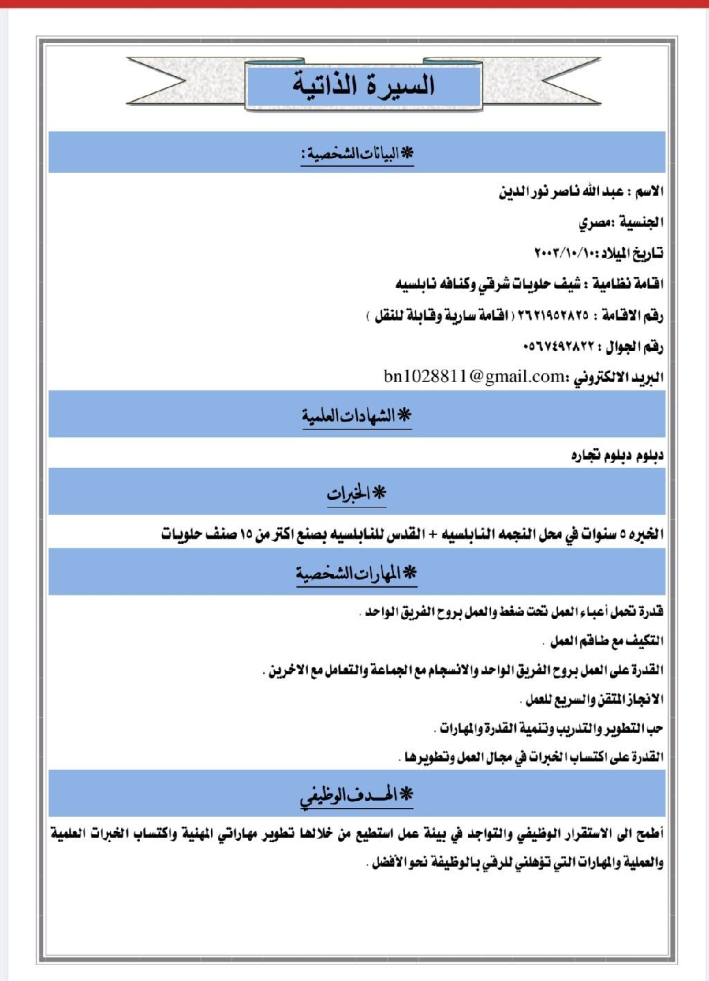 أنا شيف حلويات كنافة نابلسيه وشرقي وبدور على شغل