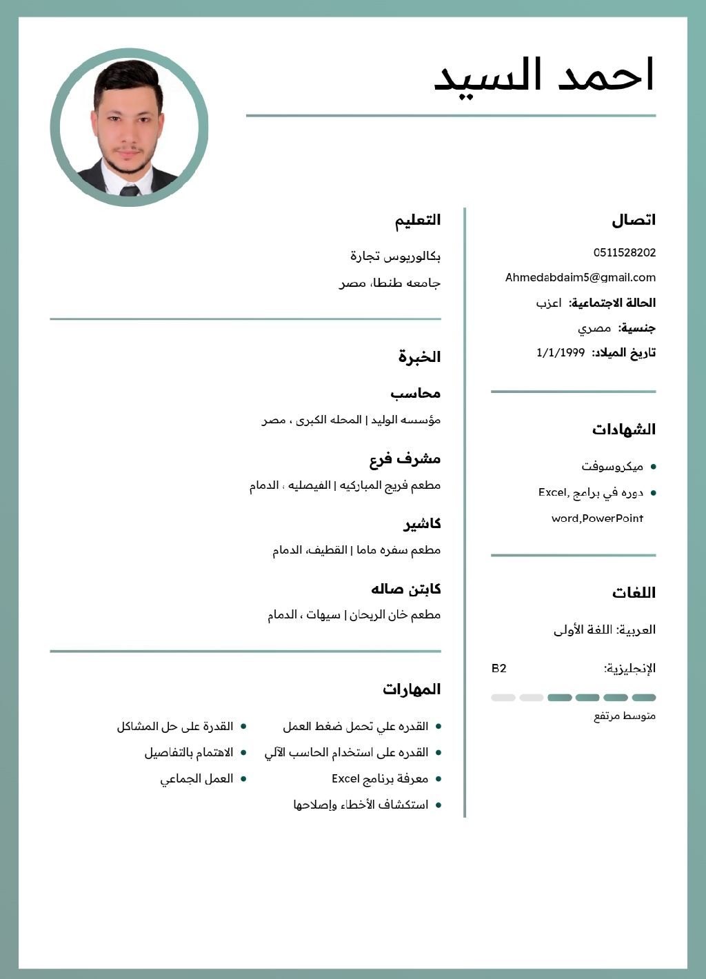 أحمد السيد مشرف فرع وخبرة بالكاشير وادارة المطاعم وخبرة بالفودكس والتعامل مع الزبائن وتسويق المنتجات واشراف المطاعم ولدي خبرة بتطبيقات التوصيل هنجر، وكيتا، وتقفيل اليوميه والتقارير