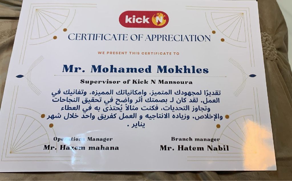 محمد مخلص محمد مخلص، امتلك خبرة واسعة في مجال المطاعم وإدارة الفروع تمتد لسنوات عديدة. بدأت مسيرتي المهنية بالعمل لدى مطعم استيرو الإيطالي لمدة 6 سنوات، حيث اكتسبت خبرة متدرجة حتى وصلت الى منصب مساعد مدير، وتعلمت خلالها أساسيات تشغيل المطاعم الإيطالية وإدارة فريق العمل وتحسين جودة الخدمة. بعد ذلك، عملت لمدة 3 سنوات لدى سيركل كي في قسم المطبخ، وتحديدا في مهام الكابتن باستا، حيث طورت مهاراتي في اعد