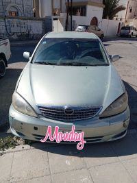 Camry 2003 Automatic Green Price 12000 final. Clean Camry, excellent engine and transmission, daily use and I travel with it without problems. Cosmetic front bumper repair, minor dents, left rear door replaced. Trunk is locked. Interior is good and needs minor cleaning. Air conditioning works well, automatic windows, tires are good. Very minor oil reduction + slight leak in power steering hoses. Airbag deployed from a minor old accident. Registration expired for two years. Al-Baha - Shahbah