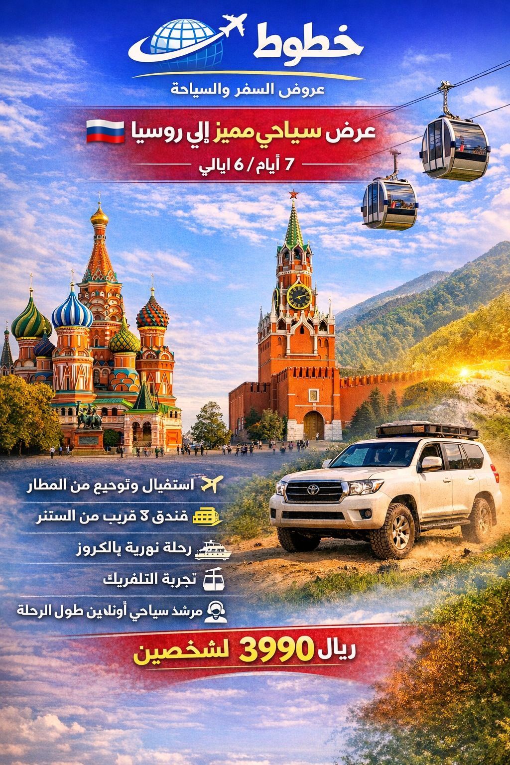 شركة خطوط الطول للسياحة تعلن عن عرض لفترة محدوده السياحة لدولة روسيا 7 أيام 3999 ريال الفردين الرحلة شامله الفندق والاستقبال والتوديع من المطار والفعاليات