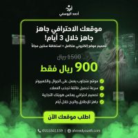 تجهيز وتصميم موقعك الاحترافي خلال 3 أيام تصميم موقع الكتروني متكامل + استضافة سنتين + دومين. com (900 ريال فقط) موقع سريع، متجاوب، وجاهز للعمل مباشرة، لطلب الخدمة تواصل