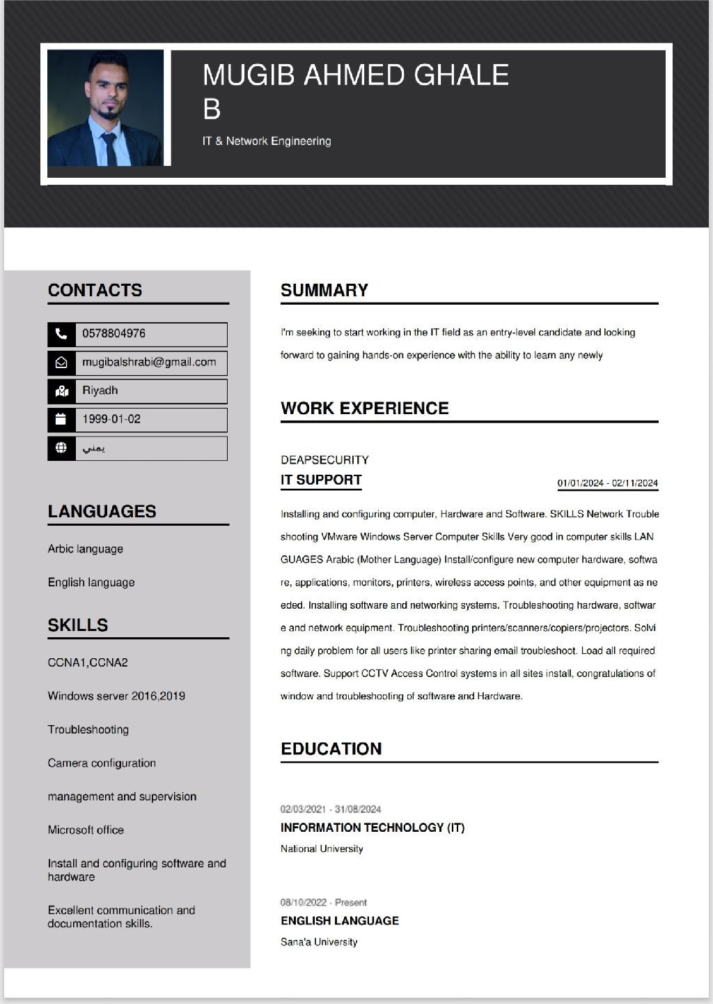 خريج تقنيات معلومات IT مقيم في الرياض ابحث على وظيفة. خبرة في تحميل وتحديث أنظمة التشغيل. تركيب الراكات وسحب الكابلات. مهتم كمان برمجة تطبيق الجوال في منصة فلاتر. ومهتم في الإدارة والاشراف