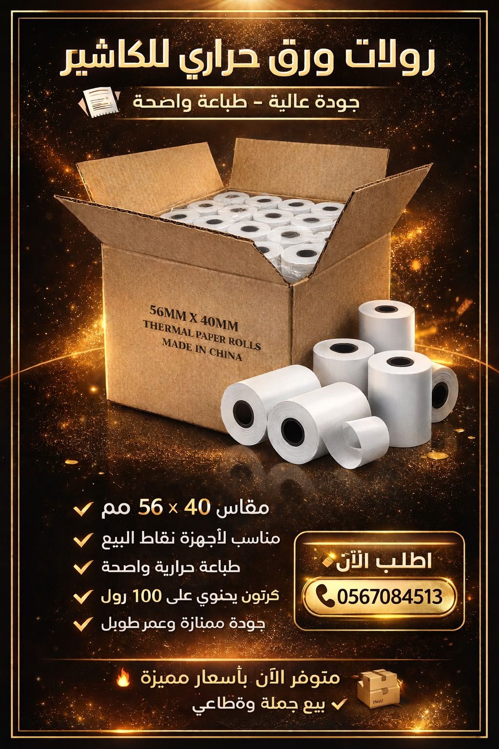 رولات ورق حراري للكاشير مقاس 56*40 جودة عالية طباعة واضحة كرتون 100 رول للطلب