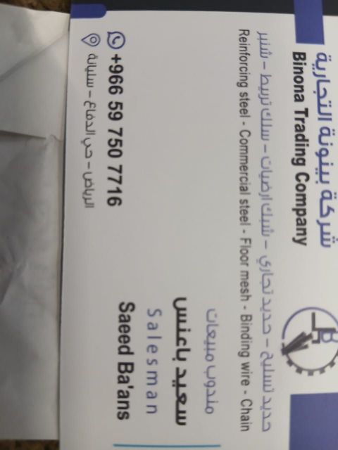 شركة بينونة للحديد نوفر لكم حديد التسليح المستخدم في البناء بأعلى جودة وأسعار منافسة حديد مطابق للمواصفات القياسية مناسب لجميع أعمال البناء والإنشاءات متوفر بمقاسات وأطوال مختلفة أسعار خاصة للكميات والمشاريع سرعة في التوريد والالتزام بالمواعيد نخدم جميع مناطق المملكة للتواصل وطلب السعر شركة بينونة للحديد - ثقة وجودة في كل سيخ