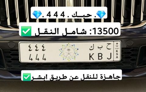 رقم لوحة مميز للتواصل واتساب ح ب ك 444 الرسوم 13500 شاملة النقل