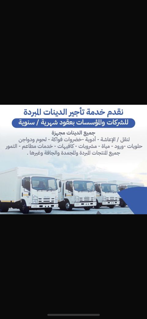هل تبحث عن شاحنة لتلبية احتياجاتك التجارية نحن هنا لنقدم لك الحل الأمثل تأجير دينات ثلاجة مبردة وجافة تأمين شامل على الدينات الصيانة الدورية تغيير الزيوت والفلاتر تأجير للشركات والمؤسسات تأجير بدون سائق للتواصل