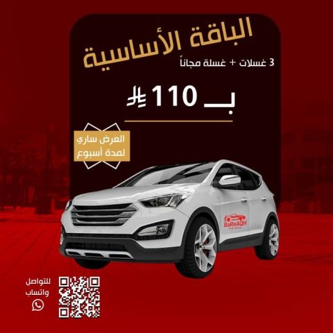 باقة براقة - غسيل سيارات متنقل نجيك لين باب بيتك أو مقر عملك السيارة الصغيرة غسيل داخلي خارجي 30 ريال خارجي فقط 25 السيدان غسيل داخلي خارجي 35 ريال خارجي فقط 30 أل SUV غسيل داخلي خارجي 45 ريال خارجي فقط 40 خدمة سريعة - نظافة مضمونة - معدات احترافية لاتمام الطلب نرجو ارسال البيانات التالية الوكيشن رقم السيارة لون السيارة